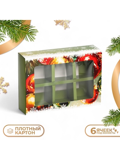 Коробка под 6 конфет с ячейками «Новогодний б...