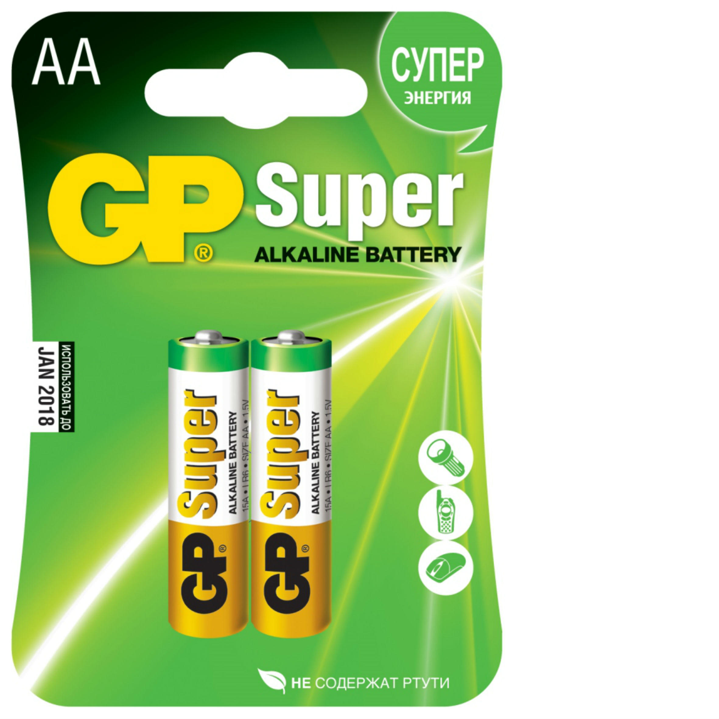 БАТАРЕЙКИ GP SUPER ALKALINE 15A-2CR2 (LR06),...