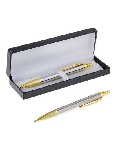 Ручка шариковая, синяя паста, 1 мм, металл, в...