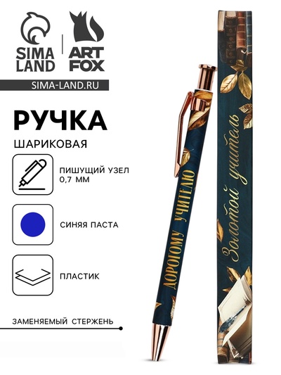 Ручка шариковая, синяя паста, автоматическая,...