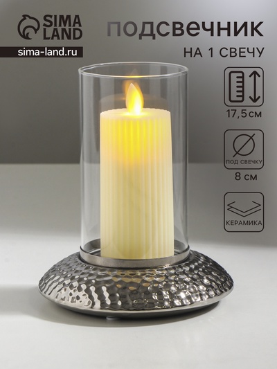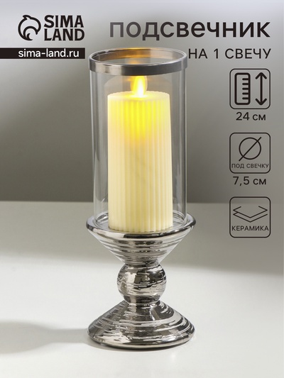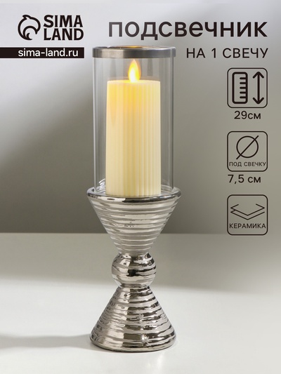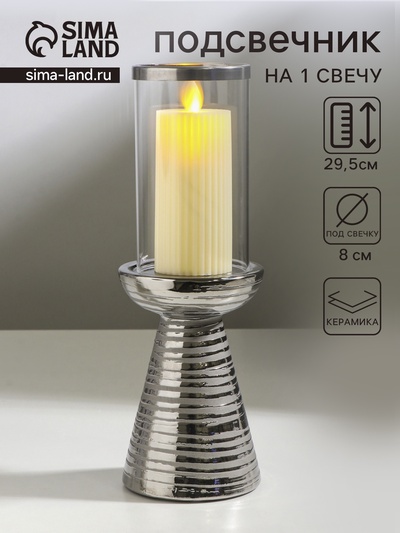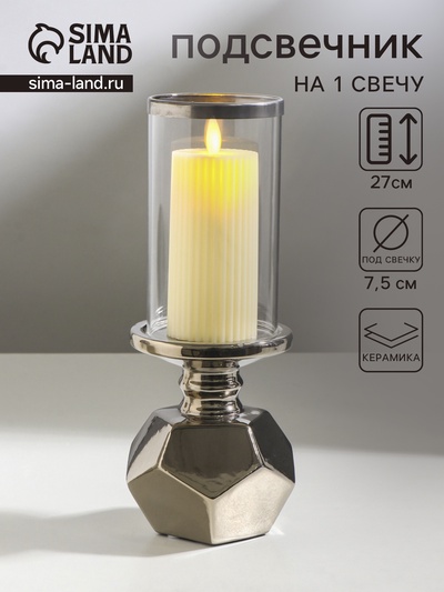 Подсвечник на 1 свечу «Хром», керамика, стекл...