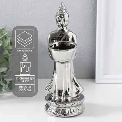 Подсвечник на 1 свечу «Будда», d=4 см, серебр...