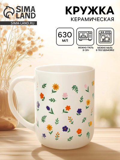 Кружка чайная керамическая «Цветы», 630 мл
