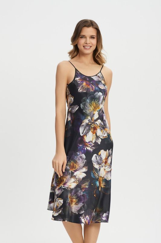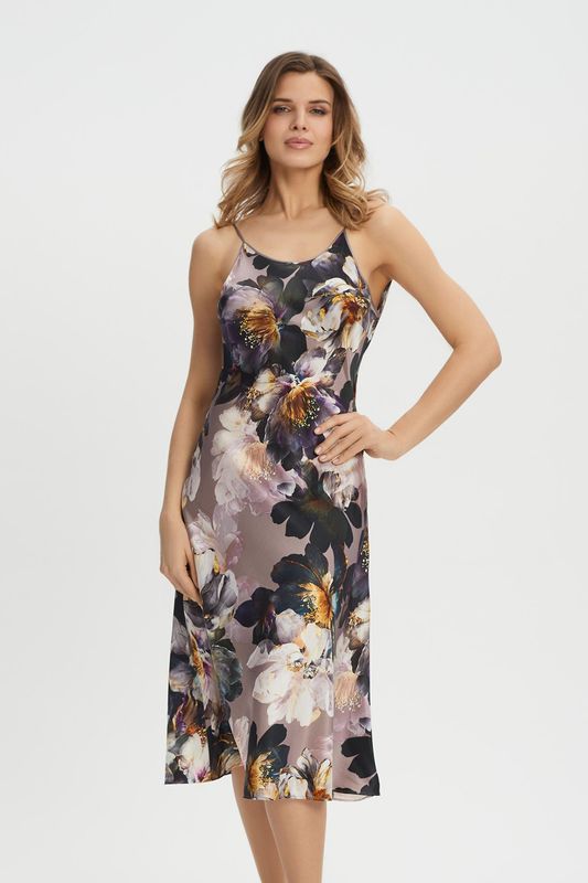 Ночная сорочка шелковая на бретельках с принт...
