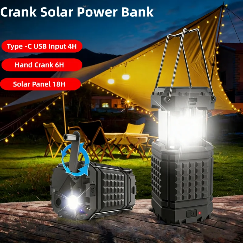 Hand Crank Solar Power Bank with Camping Ligh...