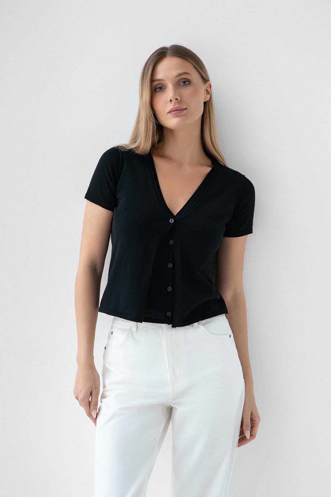Футболка из хлопка, шелка и льна