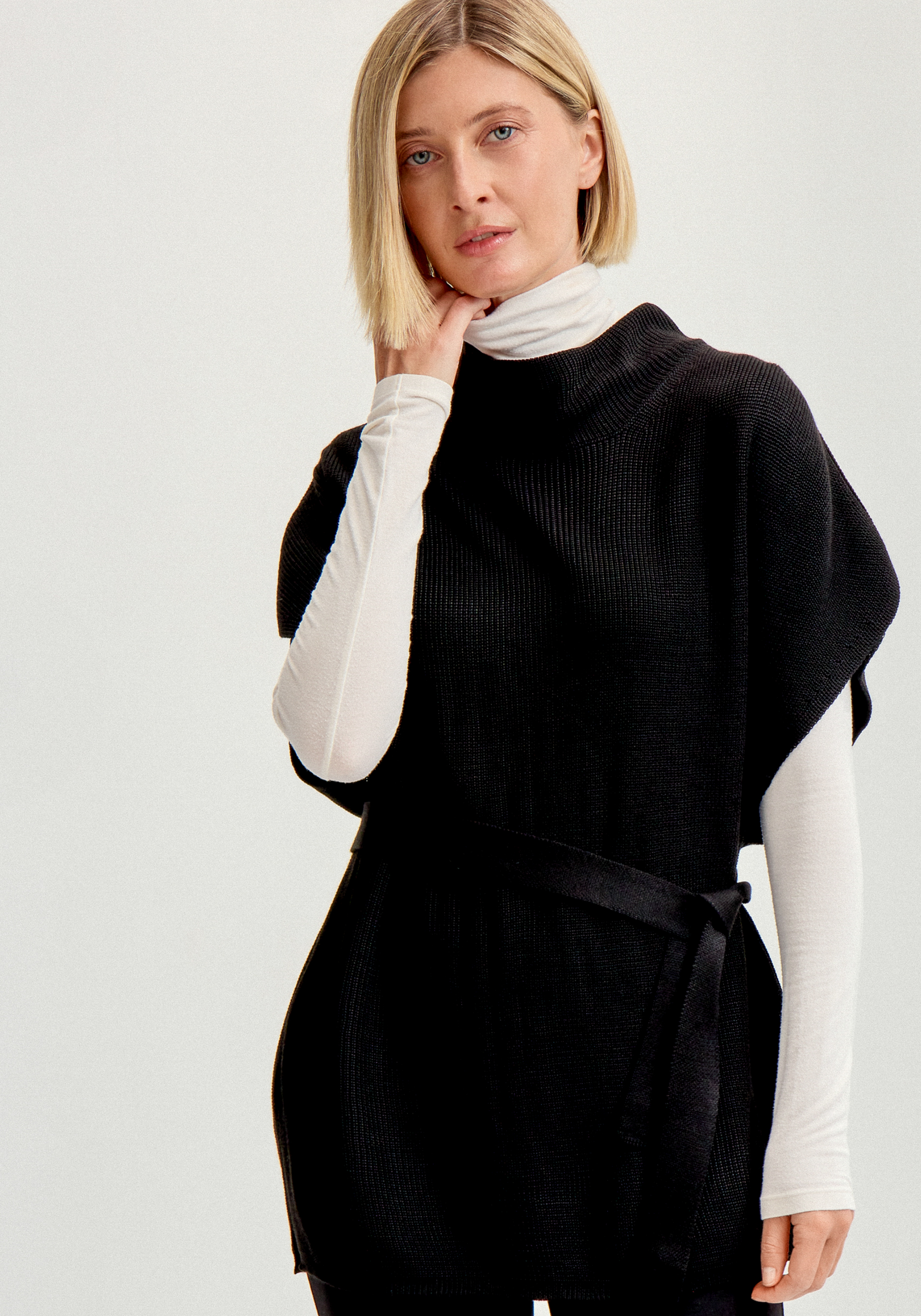 Джемпер-жилет с высоким горлом и поясом