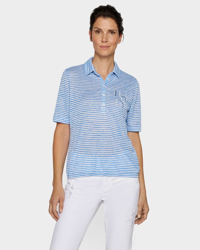 Поло с горизонтальной полоской и декором свер...