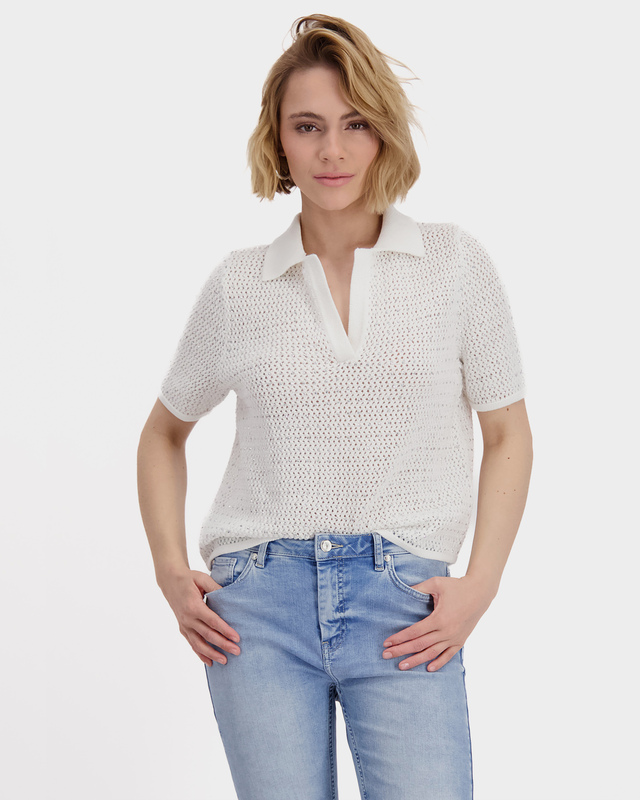 Поло из хлопкового трикотажа ажурной вязки