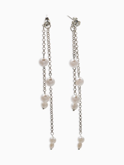Серьги висячие «Жемчужные капли», белые в сер...