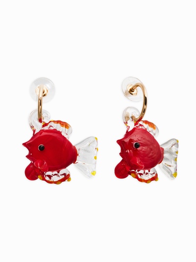Серьги из стекла «Море. Рыба», красные в золо...