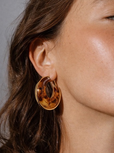 Серьги-кольца акрил «Тренд», янтарные в золот...