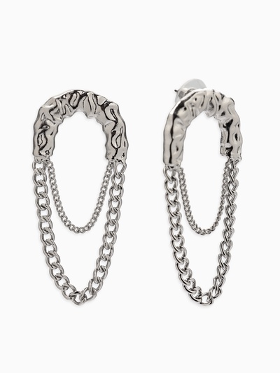 Серьги металл «Стиль» цепь, булавка, цвет сер...
