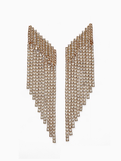 Серьги висячие со стразами «Водопад» асимметр...
