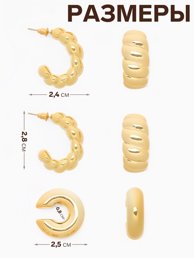 Серьги QF «Кольца и плетение», набор 4 пары,...