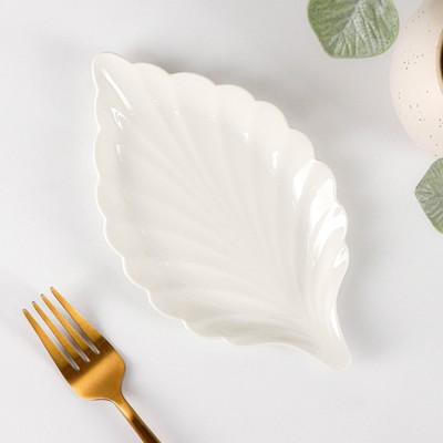 Блюдо керамическое «Лист», 19×11 см, цвет бел...