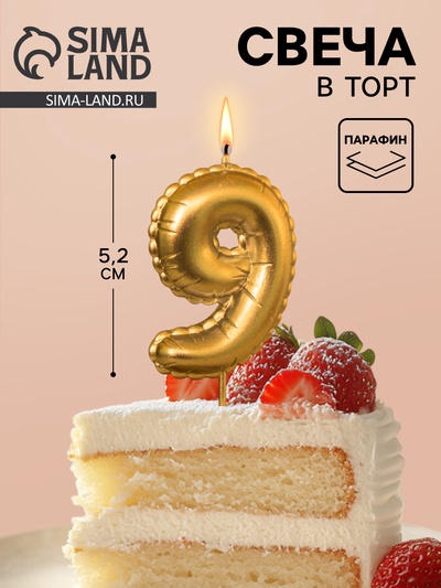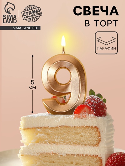 Свеча в торт на шпажке «Цифра 9», золотая, 5...