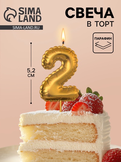 Свеча в торт на шпажке «Цифра 2», золотая, 5...