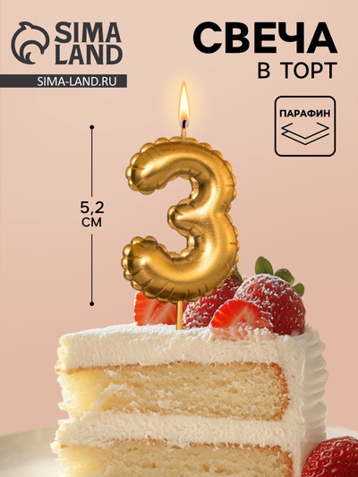 Свеча в торт на шпажке «Цифра 3», золотая, 5...