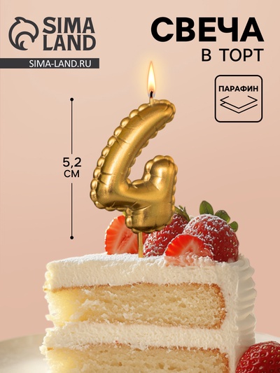 Свеча в торт на шпажке «Цифра 4», золотая, 5...