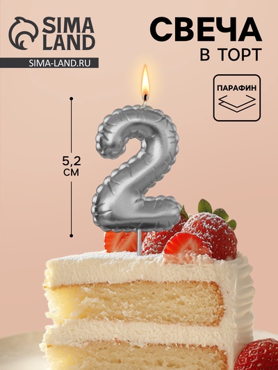 Свеча для торта цифра «Серебряная», 5.5 см, ц...