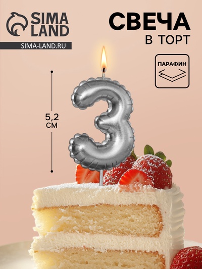 Свеча в торт на шпажке «Воздушная цифра 3», с...