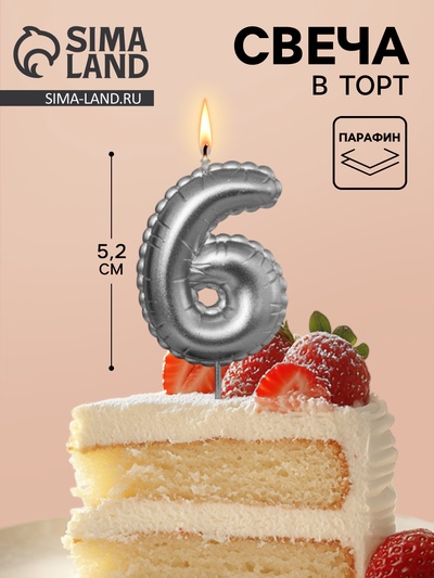 Свеча в торт на шпажке «Воздушная цифра 6», с...