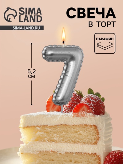 Свеча в торт «Праздник» цифра 7, жемчужный пе...