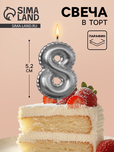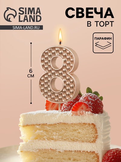 Свеча в торт «Праздник» цифра 8, жемчужный пе...