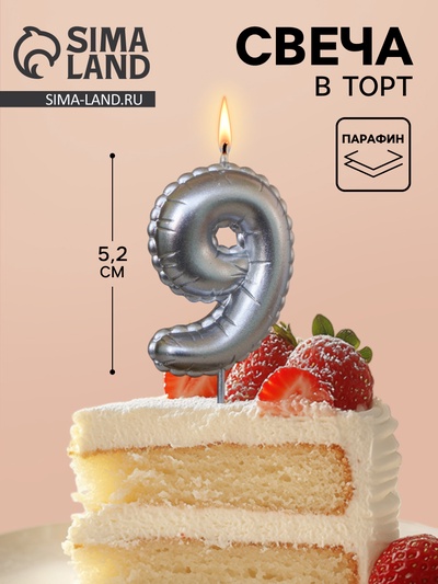 Свеча в торт «Праздник» цифра 9, жемчужный пе...