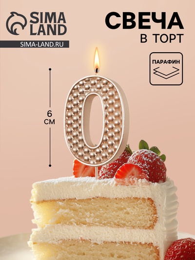 Свеча в торт на шпажке «Жемчужная», цифра 0,...