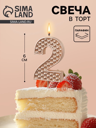 Свеча в торт на шпажке «Жемчужная», цифра 2,...