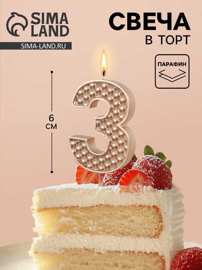 Свеча в торт на шпажке «Жемчужная», цифра 3,...