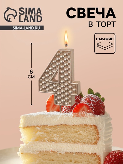 Свеча в торт на шпажке «Жемчужная», цифра 4,...