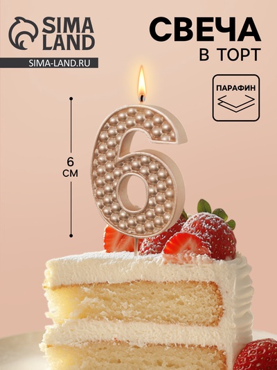 Свеча в торт на шпажке «Жемчужная», цифра 6,...