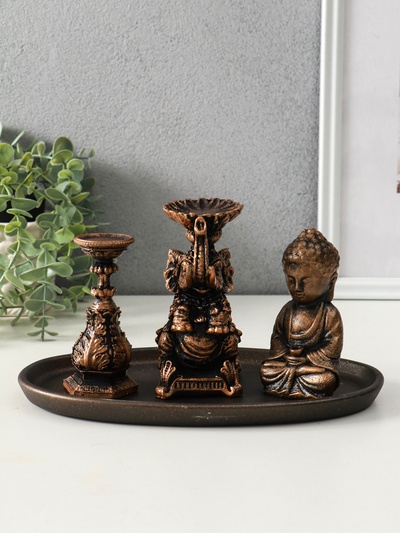Фигурка гипс «Ганеша», бронза, 7×17×12 см