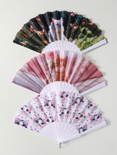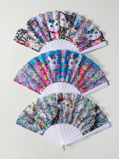 Веер складной «Кошечки и цветы», широкие лопа...
