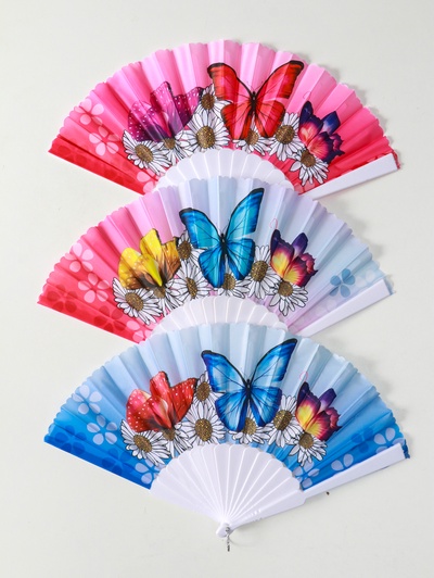 Веер складной «Ромашки и бабочки», широкие ло...