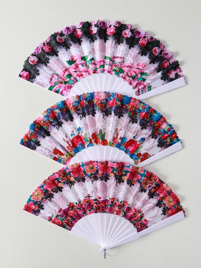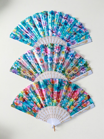 Веер складной «Цветочный», широкие лопасти, 2...