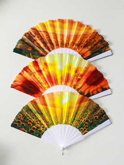 Веер складной «Подсолнухи», широкие лопасти,...