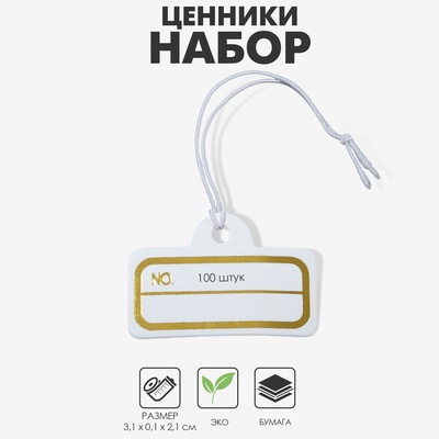 Ценники на верёвке, 100 шт., 3.3×1.8 см, белы...