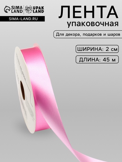 Лента для декора и подарков, розовая, 2 см ×...
