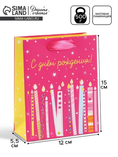 Пакет подарочный «С Днём рождения. Свечи», 12...
