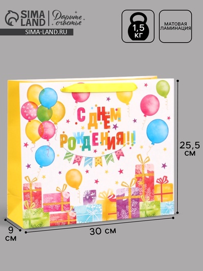Пакет подарочный «С Днём рождения», 30×25.5×9...