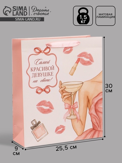 Пакет подарочный «Самой красивой», 25.5×30×9...