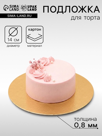 Подложка для торта, 18 см, золото, 2.5 мм