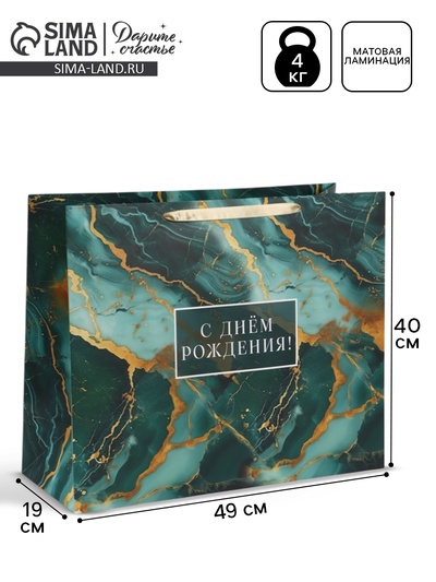 Пакет подарочный «С Днём рождения», 49×40×19...