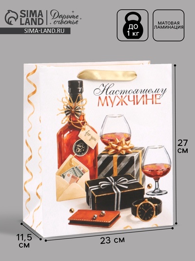Пакет подарочный «Настоящему мужчине», 23×27×...