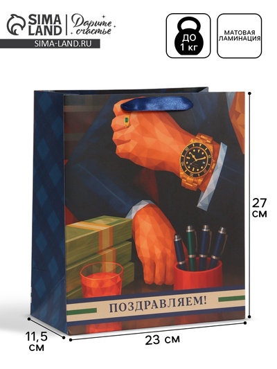 Пакет подарочный «Поздравляем», 23×27×11.5 см