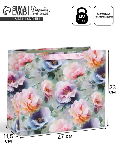 Пакет подарочный «Цветы», 27×23×11.5 см